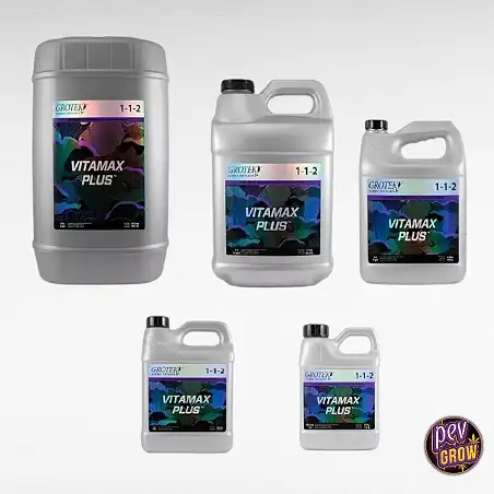 Jetzt verfügbar bei Pevgrow, Vitamax Plus von Grotek, ein Zusatzstoff mit Mikro- und Makronährstoffen, um die Entwicklung deines Weeds sowohl in der Wachstums- als auch in der Blütephase zu fördern. Dank der Nährstoffe, die Vitamax Plus liefert, kann dein Weed allen Stresssituationen standhalten und überwinden, denen eine Cannabispflanze während des Anbaus ausgesetzt ist, wie zum Beispiel Pilzbefall und andere Schädlinge, Hitze, Kälte und es fördert die Entwicklung eigener chemischer Verbindungen als Abwehrmittel, um robuster zu sein.