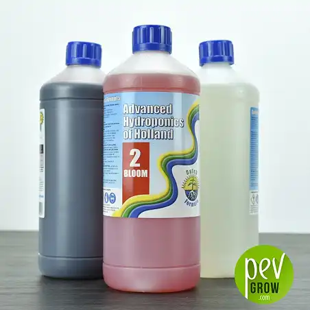 Die Advanced Hydroponics Dutch Formula Of Holland Düngerformel besteht aus drei Mischkomponenten, die sich in einem einfachen Verhältnis von 2,1:1 in der Wachstumsphase, 1:2:1 in der Vorblütephase und 0:3:1 in der Blütezeit mischen .
