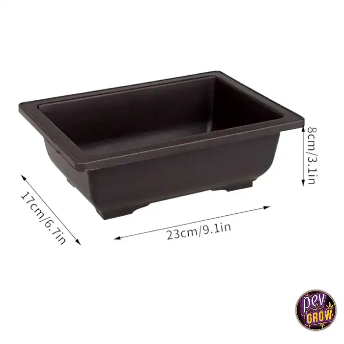 Bei Pevgrow findest du diesen praktischen und ästhetischen rechteckigen Bonsai Topf aus Kunststoff zu einem unschlagbaren Preis. Wir wissen, dass du Wert auf Qualität, Diskretion und wettbewerbsfähige Preise legst. Deshalb bieten wir dir Produkte, die deinen Ansprüchen gerecht werden und dir helfen, deine Pflanzen optimal zu pflegen. Bestelle jetzt und starte dein Bonsai-Projekt mit dem richtigen Equipment. Vertraue auf unsere 15-jährige Erfahrung im E-Commerce und profitiere von schnellem Versand und exzellentem Kundenservice.