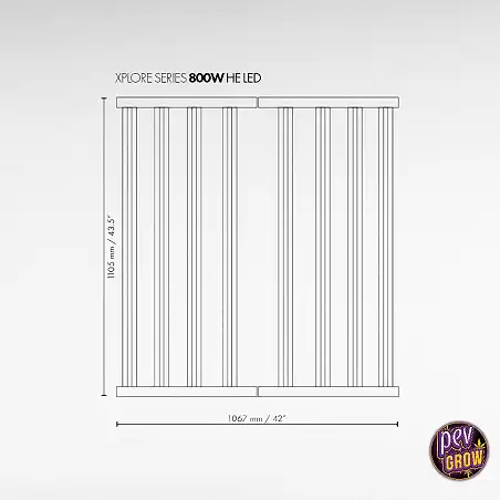 Dimlux Xplore Series LED 800W HE 285 ist eine fortschrittliche Leuchte, die für maximale Leistung im Innenanbau entwickelt wurde. Dieses 800W Led Grow Lampe zeichnet sich durch eine Lichtausbeute von bis zu 2,85 µmol/J und eine Gesamtlichtleistung von 2283 µmol/s aus, was ein kräftiges Wachstum und reiche Ernten in allen Phasen des Anbauzyklus gewährleistet.