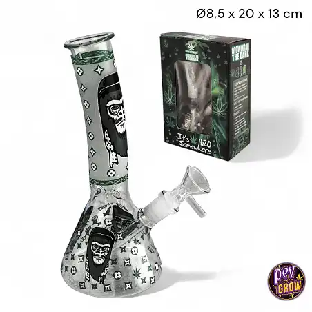Der Gorilla Leucht-Bong ist mehr als nur ein Rauchgerät; er ist ein Statement. Mit seiner Höhe von 20 cm ist er kompakt genug für den täglichen Gebrauch, aber groß genug, um beeindruckende Raucherlebnisse zu liefern. Das Besondere ist sein dreifach dickes Borosilikatglas, das ihn extrem widerstandsfähig gegen Stöße und Temperaturschwankungen macht. Du kannst dich darauf verlassen, dass dieser Glasbong dir lange Freude bereiten wird. Das Highlight ist jedoch das im Dunkeln leuchtende Gorilla-Design, das jede Session in ein visuelles Spektakel verwandelt und für Gesprächsstoff sorgt.