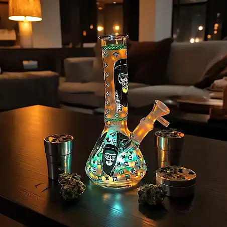 Stell dir vor, wie du nach einem langen Tag entspannst und der Gorilla Leucht-Bong seine Magie entfaltet. Dank der integrierten Ice Notches kannst du Eiswürfel hinzufügen, die den Rauch auf eine angenehme Temperatur kühlen und so für unglaublich sanfte und milde Züge sorgen. Der Diffusor-Chillum zerstreut den Rauch effektiv im Wasser, was die Filtration verbessert und dir ein reineres Geschmackserlebnis bietet. Jeder Zug wird zu einem Genussmoment, der deine Sinne verwöhnt und dich tief entspannen lässt. Dieser Bong ist perfekt für dich, wenn du Wert auf Qualität, Ästhetik und ein unvergleichliches Raucherlebnis legst.