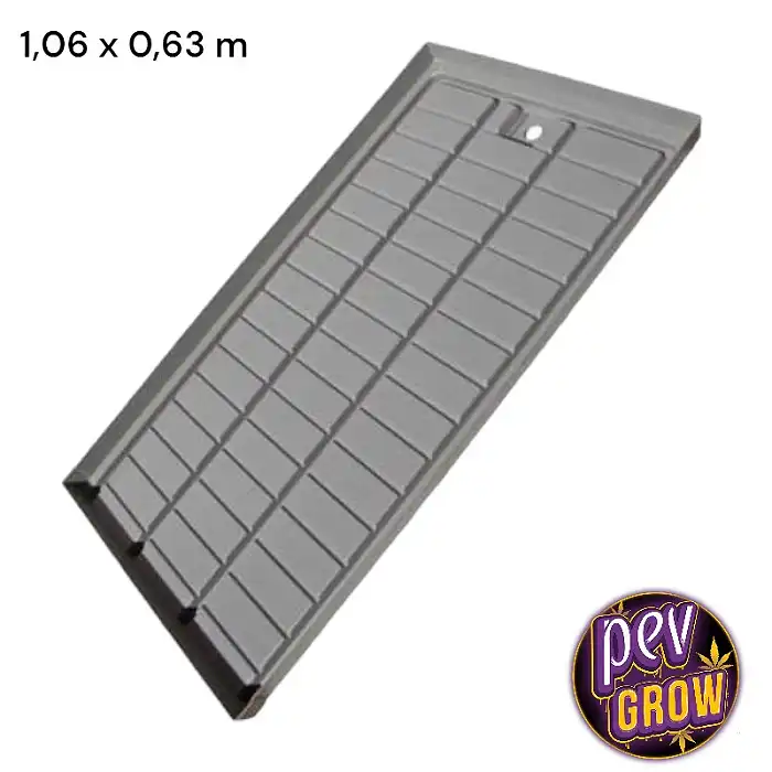 Der graue Anzuchttisch ist ein speziell für den Pflanzenanbau entworfenes Tablett, das eine effiziente Bewässerungsverwaltung ermöglicht. Dank seines Sammel- und Kanalsystems kannst du dich von den herkömmlichen Untersetzer für Blumentöpfe verabschieden und deinen Anbaubereich sauber und ordentlich halten. Dieses Produkt ist ideal für diejenigen Züchter, die die Effizienz der Wassernutzung maximieren und ein einfaches und wirksames Hydroponiksystem implementieren möchten. Der Anzuchttisch sammelt überschüssiges Wasser und leitet es zu einem Abfluss, darunter kannst du einen Eimer oder einen Schlauch platzieren, was die Wiederverwendung der Flüssigkeit erleichtert und Verschwendung verhindert.