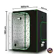 Diese Indoor-Growbox bietet eine großzügige Fläche von 150 x 150 cm Grundfläche und eine Höhe von 220 cm, was sie zu einer ausgezeichneten Wahl für Züchter macht, die eine große Anzahl von Pflanzen bewirtschaften oder mehr Höhe für bestimmte Sorten wie Sativa-Samen benötigen. Dank ihrer robusten Struktur und hochwertigen Materialien kann die Dark Box alle Arten von Anbaugeräten unterstützen, von Lichtern, die Sie mit Bremsseilzügen an den Deckenbalken befestigen können, bis hin zu schweren Geruchsfilter, Abluftventilatoren oder CO2-Generatoren für Pflanzen.