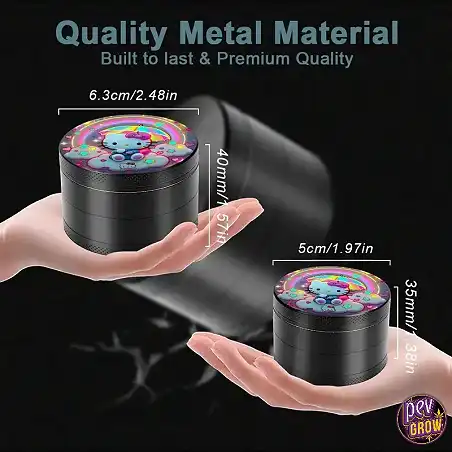 Das Regenbogen-Finish und das Hello Kitty Motiv sind auf Langlebigkeit ausgelegt, sodass dein Grinder auch nach häufigem Gebrauch noch fantastisch aussieht.