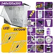 Komplettes Indoor-Anbaukit mit einem 240x120x200 cm Zelt, 2 LED-Lampen mit 720W, 24 Samen, Düngemitteln, Geruchsfiltern, Thermohygrometern, Extraktoren, Töpfen, Ventilatoren, Leitungen, Jiffys, Timer, pH-Meter und Kabeln.