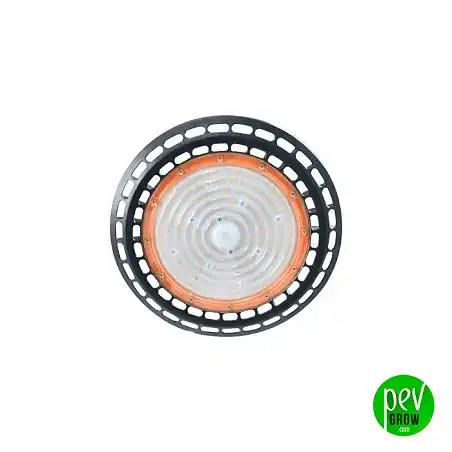 Diese Art von LED wird wegen ihrer runden Form, die einem UFO ähnelt, UFO genannt, hat aber nichts mit den ersten UFO-LEDs zu tun, die vor einigen Jahren herauskamen. Sie misst 32 cm im Durchmesser und wiegt 1,9 kg, sodass sie problemlos mit Hilfe eines Flaschenzugs an den Deckenstangen von Anbauschränken aufgehängt werden kann. Enthält Vollspektrum-3030-SMD-Dioden, montiert eine externe Linse, die als Schutzschild dient und hilft, eine bessere Lichtverteilung zu erreichen. Um die Linse herum und auf der Rückseite verfügt es über ein passives Wärmeableitungssystem, mit dem Sie den Fokus näher bringen können, ohne die Gefahr zu haben, die Blätter der Pflanzen zu verbrennen, und es macht keine Geräusche.