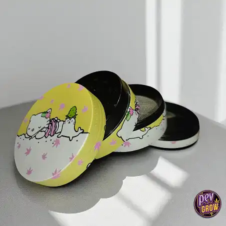 Der Metall Grinder 50mm Kitty Rest ist weit mehr als nur eine gewöhnliche Kräutermühle; er ist ein Statement für alle, die Wert auf Effizienz und ein einzigartiges Design legen. Mit seinem charmanten "Kitty Rest"-Motiv, das an die beliebte Hello Kitty erinnert, und seiner robusten Metallkonstruktion ist er der perfekte Begleiter für deine täglichen Rituale. Dieser 4-teilige Grinder wurde entwickelt, um dir ein müheloses und präzises Mahlerlebnis zu bieten, während er gleichzeitig die feinsten Pollen sammelt. Er ist ein unverzichtbares Accessoire für jeden Headshop-Liebhaber, der Qualität und Ästhetik vereint.