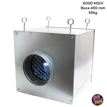 Mit Abmessungen von 75x75x75 cm und einem Gewicht von 55 kg ist dieser Extraktor kompakt genug, um in verschiedene Anbauräume integriert zu werden, aber dennoch leistungsstark genug, um Luftvolumen von bis zu 6000 m3 pro Stunde zu bewältigen.