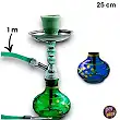 Die Mini-Shisha in verschiedenen Farben bietet ein elegantes Design mit ihrem dekorierten Glasfuß und einem robusten Metallkörper. Sie ist perfekt, um alleine oder in Gesellschaft zu genießen, und wird zu einem stilvollen Dekorationsakzent für jedes Ambiente.