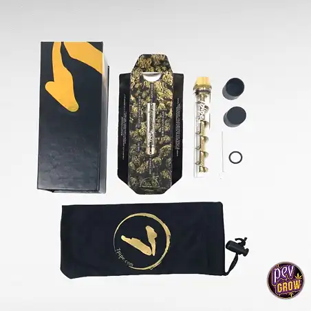 Dieses Gerät zeichnet sich durch seine Eleganz und Raffinesse aus. Das Glasrohr zusammen mit der Metallspirale und dem goldenen Mundstück bilden eine visuell ansprechende und funktionale Einheit. Die Qualität der Materialien garantiert Langlebigkeit und Robustheit, während das kompakte Design und das mitgelieferte Zubehör wie Silikondeckel und Tragetasche großen Komfort und Portabilität bieten.