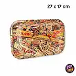 Das RAW Mix Metalltablett ist eine speziell entworfene Unterlage, die dir hilft, deine Kräuter und dein Raucherzubehör sauber und ordentlich zu halten. Mit den Maßen 27 x 17 cm bietet es ausreichend Platz für deine Papers, Filter, Grinder und alles, was du zum Drehen benötigst. Das "Mix"-Design zeigt eine ansprechende Collage aus verschiedenen RAW-Produkten und Logos, was es zu einem echten Sammlerstück macht. Es ist aus langlebigem Metall gefertigt, das Stabilität und eine lange Lebensdauer garantiert.