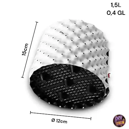 Der Root Plus Runde Weiße 1,5L Topf von Pevgrow ist darauf ausgelegt, das Wurzelwachstum zu optimieren. Mit einem zylindrischen Design und konischen Belüftungslöchern sorgt dieser Topf für eine bessere Luftzirkulation und verhindert, dass sich die Wurzeln verheddern. Ideal zur Verbesserung der Wasser- und Nährstoffaufnahme, fördert er ein kräftigeres und gesünderes Wachstum.