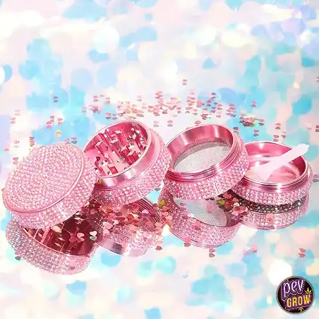 Bist du bereit, deine Kräuter auf die glamouröseste Art und Weise zu zerkleinern? Dann ist dieser rosa Metall Grinder mit Glitzer genau das Richtige für dich. Bei Pevgrow findest du diesen und viele weitere metallische Grinder zu unschlagbaren Preisen. Wir garantieren dir nicht nur ein Produkt von höchster Qualität, sondern auch einen diskreten Versand und exzellenten Kundenservice. Warte nicht länger und verleihe deinem Raucherlebnis einen Hauch von Luxus. Bestelle jetzt und überzeuge dich selbst von der Effizienz und dem einzigartigen Design dieses Grinders!