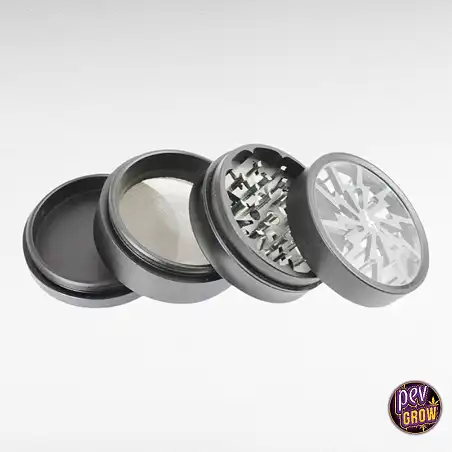 Dieser metallische Grinder mit 4 Teilen besticht nicht nur durch seine Funktionalität, sondern auch durch seine Ästhetik. Sein graues Finish und der transparente Deckel verleihen ihm einen modernen und raffinierten Touch, der ihn von anderen Grinders auf dem Markt abhebt.