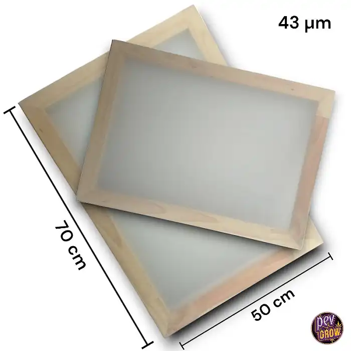 Cada marco está construido con madera robusta y equipado con una malla de poliéster, diseñada para resistir el desgaste del uso continuo. Las dimensiones estándar de estas pantallas son de 70 x 50 cm, proporcionando un amplio espacio para trabajar cómodamente con cantidades significativas de material. La malla de poliéster no solo es resistente, sino que también es fácil de limpiar y mantener, lo que asegura una larga vida útil y un rendimiento constante en tus extracciones.