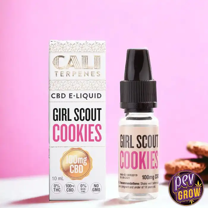 Descubre el E-Liquid CBD Girl Scout Cookies de Cali Terpenes, un jugo premium para vapear que combina el sabor de la cepa Girl Scout Cookies con los beneficios del CBD. Sin THC ni nicotina, ideal para relajarte y disfrutar.