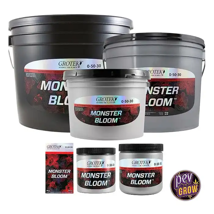 Το Monster Bloom από την Grotek είναι το οριστικό εργαλείο για καλλιεργητές που δεν ικανοποιούνται με μέτρια αποτελέσματα και ζητούν βαριά, σκληρά άνθη. Αυτό το θρυλικό πρόσθετο σε σκόνη έχει σχεδιαστεί ειδικά για να παρέχει μια τεράστια δόση Φωσφόρου και Καλίου ακριβώς όταν τα φυτά σας το χρειάζονται περισσότερο, για να αυξήσουν το μέγεθος της σοδειάς.