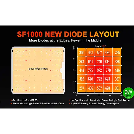 Μόλις βλαστήσουν οι σπόροι σας, το Spider Farmer SF1000 γίνεται ο καλύτερος σύμμαχός σας. Ο ενσωματωμένος ρυθμιστής επιτρέπει τη ρύθμιση της έντασης χωρίς να αλλάξει το φάσμα. Ξεκινήστε χαμηλά (περίπου 40-60%) κατά το στάδιο των μικρών φυτών για να αποφύγετε το στρες, και αυξήστε το στο 100% καθώς μπαίνετε στη φάση άνθισης. Οι διόδους της Samsung παρέχουν ένα πλούσιο, πλήρες φάσμα (3000K, 5000K, 660nm Red, και IR) που μιμείται το φυσικό φως του ήλιου.