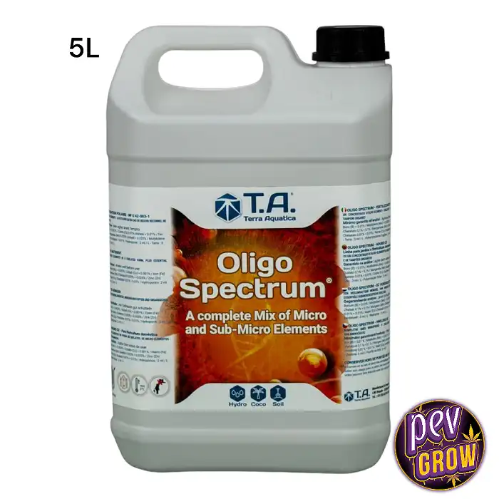 Το Oligo Spectrum της GHE (τώρα Terra Aquatica) είναι η ολοκληρωμένη διατροφική ασφάλιση που χρειάζεται η καλλιέργειά σας για να φτάσει στο πλήρες δυναμικό της. Αυτό το συμπυκνωμένο πρόσθετο παρέχει ένα πλήρες φάσμα χηλικών μικροστοιχείων σε συνδυασμό με οργανικούς ρυθμιστές pH, εξασφαλίζοντας ότι τα φυτά σας δεν έχουν μόνο πρόσβαση σε όλα τα ιχνοστοιχεία που χρειάζονται, αλλά μπορούν επίσης να τα απορροφήσουν αποτελεσματικά, ανεξάρτητα από το μέσο καλλιέργειας.