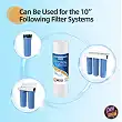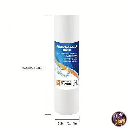 Πρόκειται για τυποποιημένο φίλτρο 10 ιντσών (περίπου 25,5 εκ. x 6,2 εκ.). Ταιριάζει στην πλειονότητα των συστημάτων RO κάτω από το νιπτήρα και σε σώματα φίλτρων κήπου.