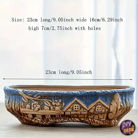 You'll appreciate its captivating blue hue and vintage aesthetic, designed to bring a touch of tranquility and sophistication to any room. Whether you're a seasoned bonsai master or just starting your journey, this pot provides the ideal environment for your plants to thrive, ensuring proper aeration and drainage crucial for healthy root development.