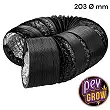 The Combiconnect Tube stands out for its opaque black color, which prevents light from entering or escaping, keeping the lighting conditions of your cultivation under control. Its aluminum interior ensures a solid structure, while the exterior PVC coating provides additional resistance against corrosive agents such as ozone. With a diameter of 203 mm and a length of 10 meters, this tube is ideal for larger ventilation systems, ensuring a constant and efficient airflow.