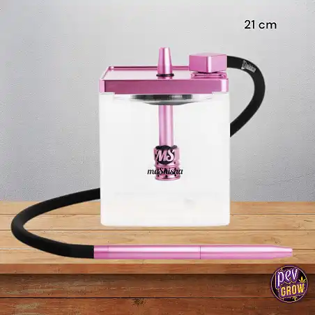 The MS MICRO Hookah is an innovative hookah designed to provide you with an exceptional smoking experience. Its robust construction and attractive cubic design in acrylic and aluminum give it the perfect lightness you need to take it anywhere. With comfortable dimensions of 15x15 cm and a height of 21 cm, this hookah allows you to enjoy without losing your personal touch.