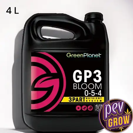 Green Planet's GP3 Bloom is a concentrated liquid fertilizer ideal for cannabis flowering. With an NPK ratio of 0-5-4, it enhances the development of dense and resinous flowers.