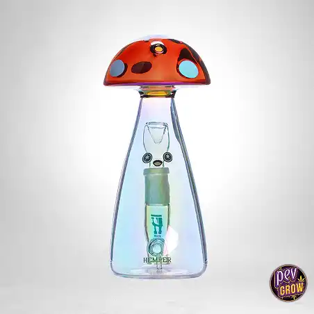 Imagine a moment of tranquility mixed with a touch of magic. That's the Hemper - Trippy Shroom Bong, a visual and functional attraction that not only delights the eye but turns every hit into a smooth journey thanks to its ingenious shower percolator. With its iconic red mushroom design and iridescent finish that plays with light, it is both a gem for daily use and a stellar display piece.