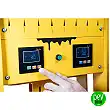 It is a manual press that is activated by the arm that in this case is separate, with a longer lever so that it is less difficult for us to exert all the pressure. First of all, you have to plug in the power cable, and once it is active, you have to set the extraction temperature that you want. This rosin press model contains 2 small independent management panels, and each of them is used to set the temperature that each of the heating plates will have.