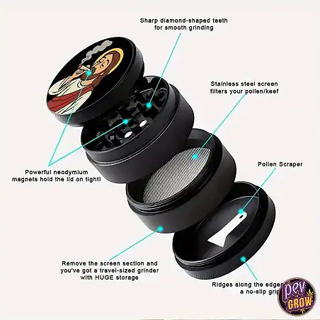 Imagine the conversations this grinder will spark! Its unique design sets it apart from conventional grinders, reflecting your personality and sense of humor. Beyond its aesthetics, you'll appreciate the smooth, effortless grind it provides. The sharp, diamond-shaped teeth are engineered to shred your herbs to a perfect, fluffy consistency, enhancing your smoking or vaping experience.