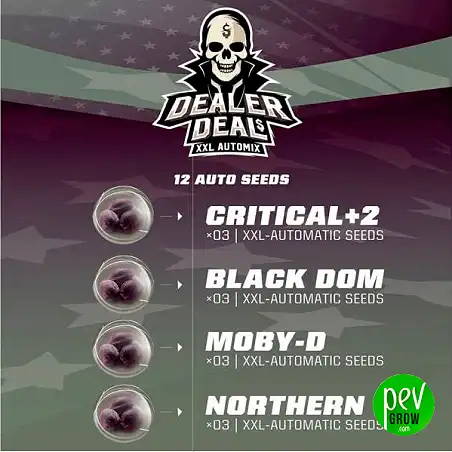 Dealer Deal XXL Automix by BSF Seeds is a collector's pack from this bank that is made up of 12 seeds of tall autoflowering varieties from this bank. It is made up of 3 seeds of 4 different varieties, all of them Auto XXL of great quality. This collection is special for fans of this brand or for those growers who prefer to have a wide variety of seeds.