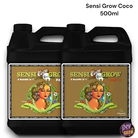Now available in your trusted online Growshop Sensi Grow A+B Coco from Advanced Nutrients, a two-part base fertilizer specifically for the growing phase on coconut substrates. Coconut is an inert substrate that does not provide nutrients by itself, so it is very important to give your weed specific products so that it can grow strong and healthy.