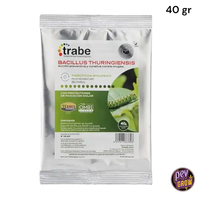 Don't let pests compromise your harvest. Secure your crops with Trabe Bacillus Thuringiensis 40gr, the natural and effective solution for caterpillar control. At Pevgrow, we offer you this essential bioinsecticide at the best online price, ensuring your plants are protected responsibly. Add it to your cart today and experience the peace of mind that comes with a healthy, pest-free garden.