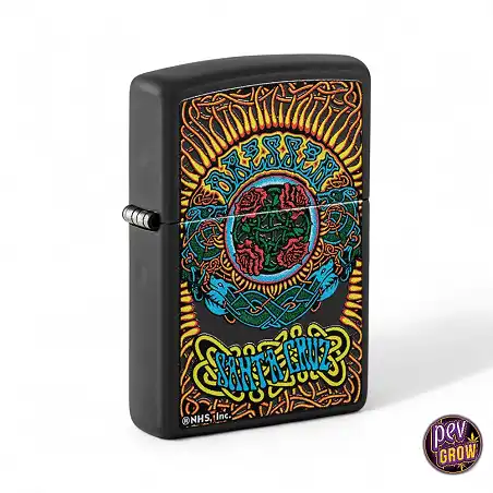 Este encendedor Zippo se presenta con un acabado mate, que puede ser negro o blanco, y un diseño a color que resalta los elementos gráficos de Santa Cruz. Sus dimensiones compactas (aproximadamente 5.5 cm de alto, 3.5 cm de ancho y 1.1 cm de grosor) y su peso ligero (alrededor de 55-80 gramos) lo hacen perfecto para llevarlo contigo a todas partes, ya sea en el bolsillo o en tu parafernalia cannábica. Viene empaquetado en una elegante caja de regalo, ideal para coleccionistas o para sorprender a alguien especial.