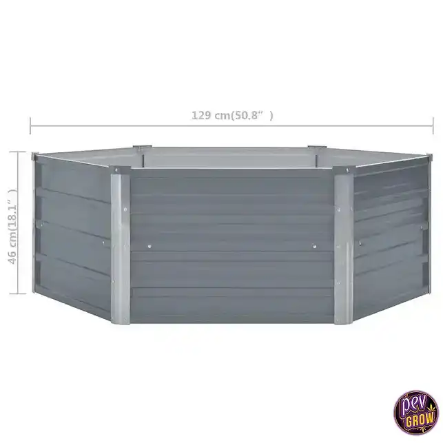 Kuusnurkne galvaniseeritud metallist tõstetud aiakarp on lõplik struktuur, mis aitab professionaalsemaks muuta su välimist kasvatamisruumi, pakkudes tugevat 129x129x46 cm kasvatamisala, mis muudab laiali hajutatud karbidest segaduse üheks keskendunud, kõrge tootlikkusega kasvatustsooniks. See on loodud vastu pidama ilmastikutingimustele, samal ajal pakkudes taimedele piisavalt sügavust, et need võimsalt kasvaksid.