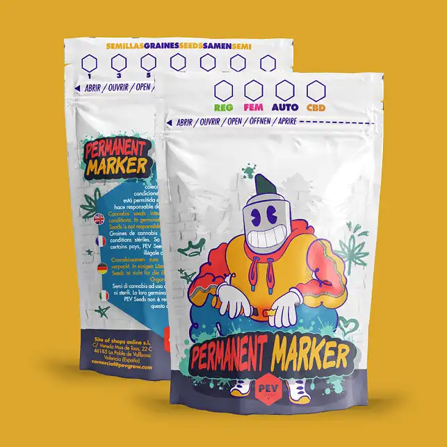 Permanent Marker PEV Seed premiumak dira, harroak diren, THC altukoak diren eta mintza, baratxuria eta kojoneria terpeno profil konplexua duten indica-dominanteak sortzen dituzten cannabis seed feminizatuak, kanpokoan 600g/landare baino gehiago errendimendua lortuz.