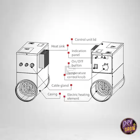 NK-150-1.2-k 1200 W-eko berogailu-elementua erabiltzen du, airea igarotzen denean berotuz. Horrek esan nahi du haizagailuek banatzen duten berotasuna uniformea dela, radiator tradizionalen ondorioz sortzen diren puntu bero arriskutsuak ekidinez. Aerazioa eta beroketa kanal bakar batean bateratzen ditu, lurrerako espazioa askatuz zuen landareentzat.