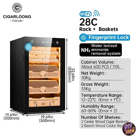 Hozkailu adimentsu adimentsua WiFiarekin (83x50x50 cm) da amatigintzatik profesional tasera salto definitiboa, zure puruen bilduma beti egoera optimoan mantentzeko diseinatua. Ez da hutsik kutxa bat; mundu osoan zehar zure tabakoaren mikroklima kontrola dezakezu zure mugikorretik, zuhaitzaren edertasun tradizionala sistema elektroniko inteligentearekin konbinatzen dituena.