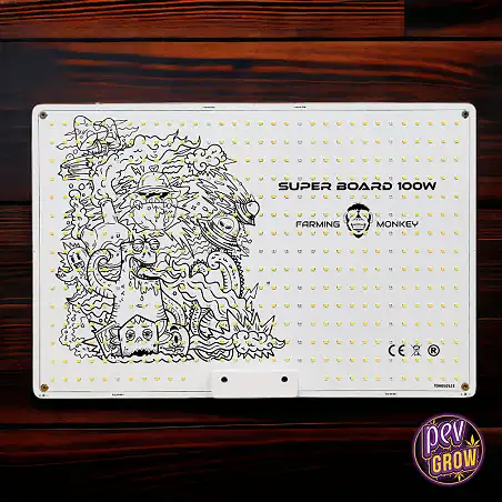 Farming Monkey-ren Led Super Board 100W / 150W plaka mehe, isil eta eraginkortasun altuko argiztapen soluzioa da, zure barruko ekoizpena igo nahi badu, baina elektrizitate-kostua ez. Samsung-en azken teknologiarekin hornitutako panel honek zera zehazten du: Farming Monkey argiztapen plaka moderno batek izan behar duena: indartsua, eskuragarria eta oso eraginkorra hazkuntza eta florazio faseetarako.