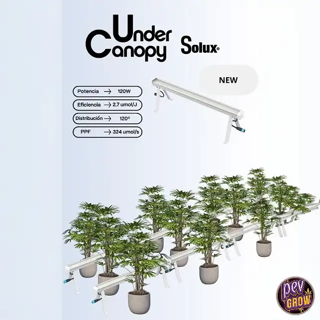 Under Canopy 120W Solux da zure rutina antolatzen duen eta errendimendua maximizatzen duen pieza falta. Zuzenean sartuz argia kanopira, fotosintesi uniformea ziurtatzen du landare osoan. Horrek esan nahi du ez duzula beheko adarrik bota behar, eta goitik behera kalitate handiko broteak bildu ditzakezu, ziklo osoa errazagoa eta produktibitate handiagoa eginez.