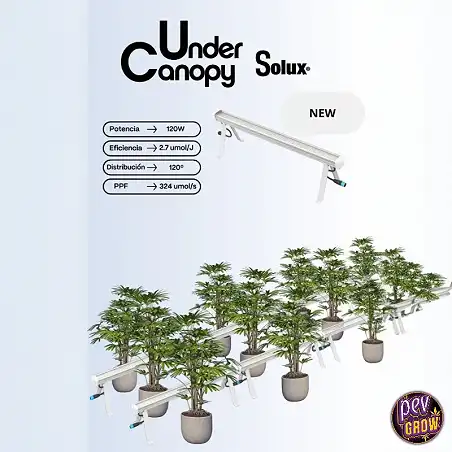 Absolutuki. Under Canopy 120W Solux edozein argi-sistema nagusiri osagarri gisa funtzionatzen du, HPS, CMH edo beste LED marka batekin.
