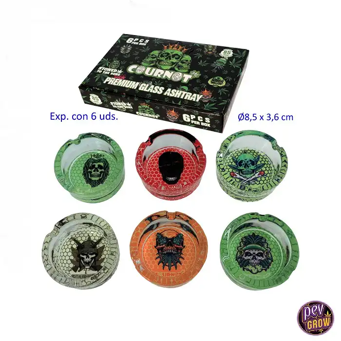 En Pevgrow, sabemos que valoras la originalidad y la calidad. Este expositor te ofrece ambos. Cada uno de los 6 ceniceros de cristal ha sido cuidadosamente elaborado con un diseño de calavera diferente, lo que los convierte en una pieza de colección imprescindible. Son robustos, fáciles de limpiar y su tamaño compacto (Ø8,5 cm) los hace versátiles para cualquier superficie. Además, al ser un pack, obtienes una variedad que difícilmente encontrarás en otro lugar, ideal para quienes buscan ceniceros que destaquen.