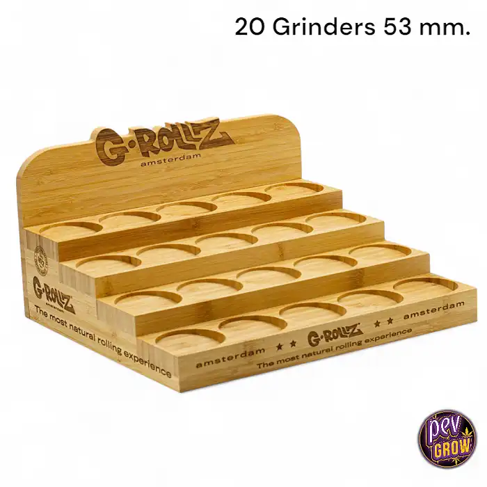 No esperes más para darle a tu colección de grinders el lugar que se merece. En Pevgrow, te ofrecemos el Expositor de Bamboo G-Rollz para 20 grinders de 53 mm al mejor precio del mercado. Disfruta de la comodidad de tener tus accesorios organizados y listos para usar, con la discreción y el servicio de calidad que nos caracterizan. ¡Haz tu pedido hoy y eleva tu experiencia!
