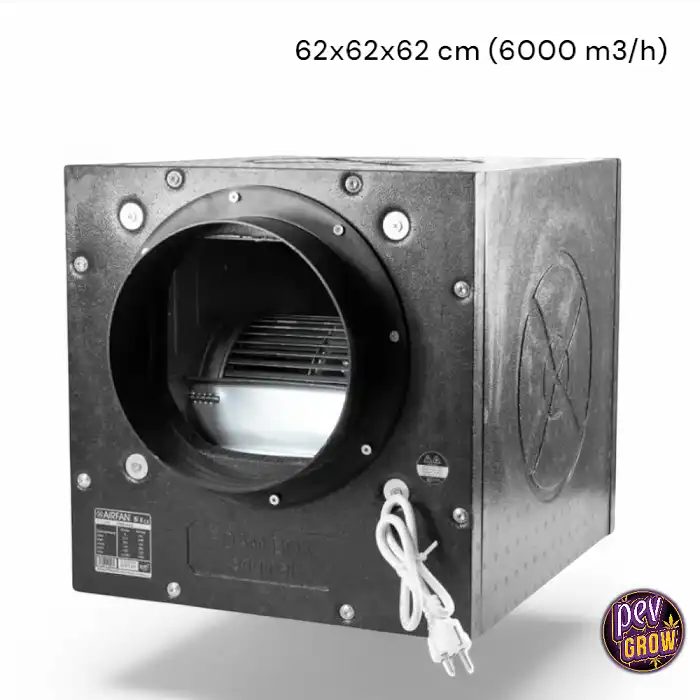 Con un impresionante caudal máximo de 6000 m3/h y un peso de solo 29 Kg, este extractor no es solo potente, sino que también es sorprendentemente ligero. La instalación se convierte en un juego de niños, permitiendo que te adaptes a tu sistema de ventilación en un abrir y cerrar de ojos. Y con un nivel sonoro de solo 59,4 dB, podrás disfrutar de un cultivo eficiente sin el ruido que suele acompañar a estos equipos.
