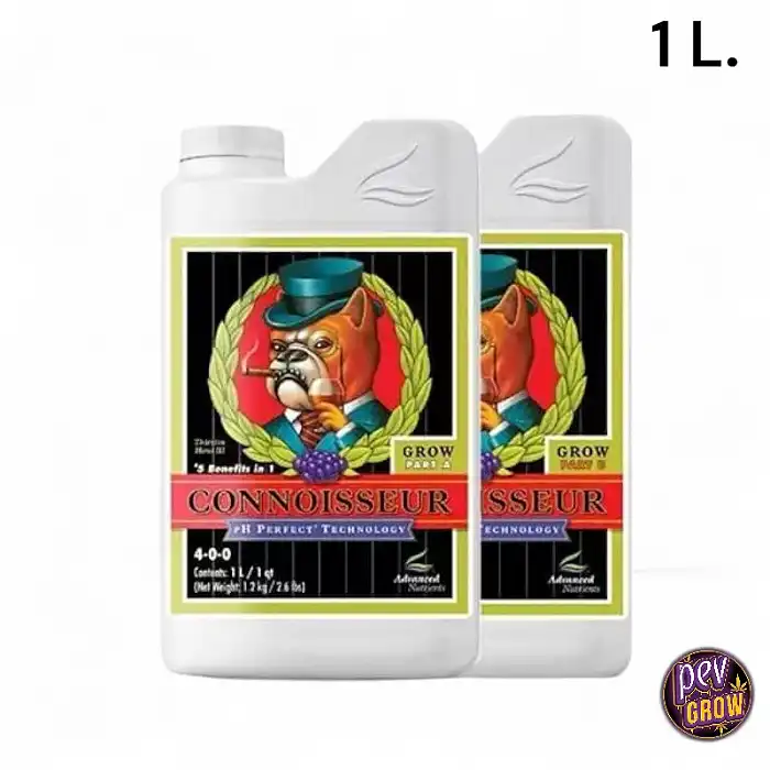 Connoisseur Coco Grow A + B es un fertilizante base de Advanced Nutrients para el crecimiento vegetativo en cultivos de cannabis con fibra de coco. Ofrece nutrientes quelatados, sistema "PH Perfect" y evita acumulación de sales. Ideal para cultivadores exigentes.