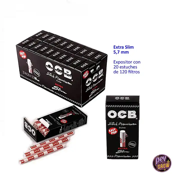 Los filtros slim suelen tener un diámetro de 6 mm, mientras que los extra slim, como estos OCB, tienen un diámetro aún menor, de 5,7 mm. Esto permite liar cigarrillos más finos y compactos.