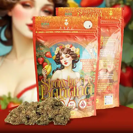 Las flores de CBD Strawberry Banana surgieron originalmente de una colaboración pionera entre el banco de semillas Crockett Seeds y Serious Seeds. Después de alcanzar fama mundial como variedad de marihuana normal, se hicieron diferentes cruces para aumentar sus niveles de CBD y bajar los de THC, de esta forma se convirtió en una cepa rica en cannabidiol y totalmente legal, ya que contiene menos del 0,2% de THC.