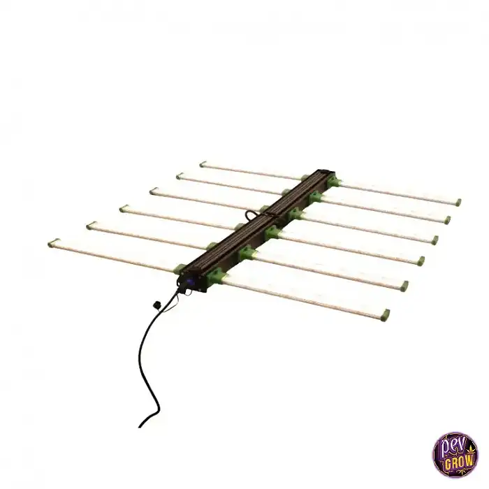 El Dragonfly está compuesto por 12 barras LED que se unen a un armazón central. Este diseño modular permite una fácil sustitución de las barras y la combinación del espectro de luz según las necesidades del cultivo. Además, cuenta con un controlador regulable incorporado y un sistema de refrigeración pasiva, lo que lo hace silencioso y eficiente.